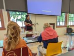 - Dr Linda Sandel Pettit helping out the speaker